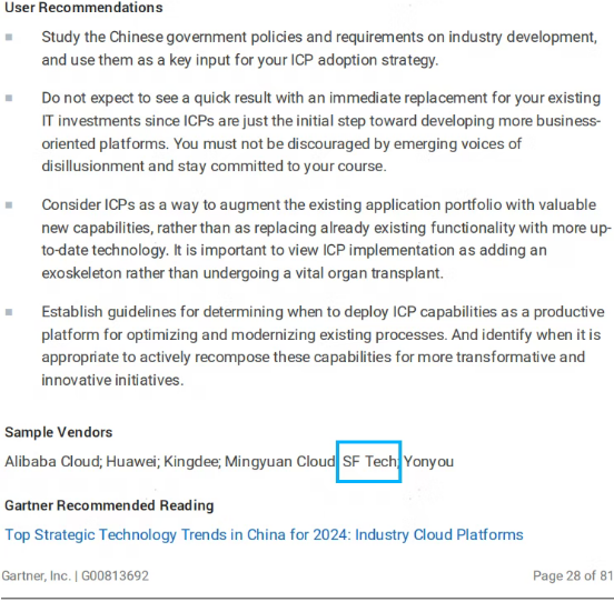 日前,顺丰在智慧物流供应链领域的数智化实践,获全球先进IT研究与咨询机构Gartner权威认可,被列为战略前瞻性标杆案例,并向其全球范围的CIO、CISO会员进行推介。顺丰的科技创新实力,再获国际关注。